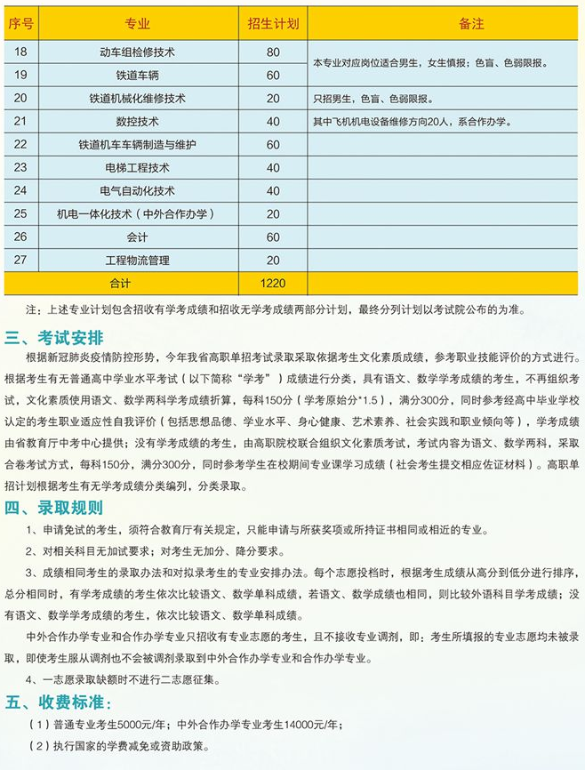 河北軌道運輸職業技術學院2022年單招簡章