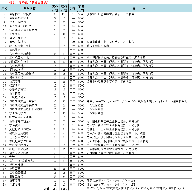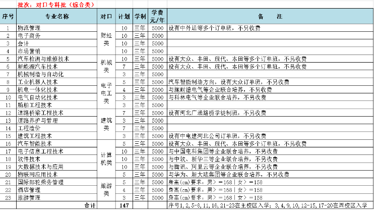 河北交通職業技術學院2022年省內招生計劃