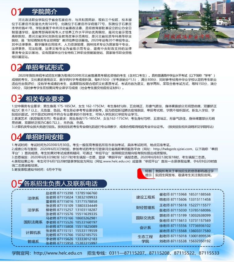 河北政法職業學院2022年單獨考試招生計劃